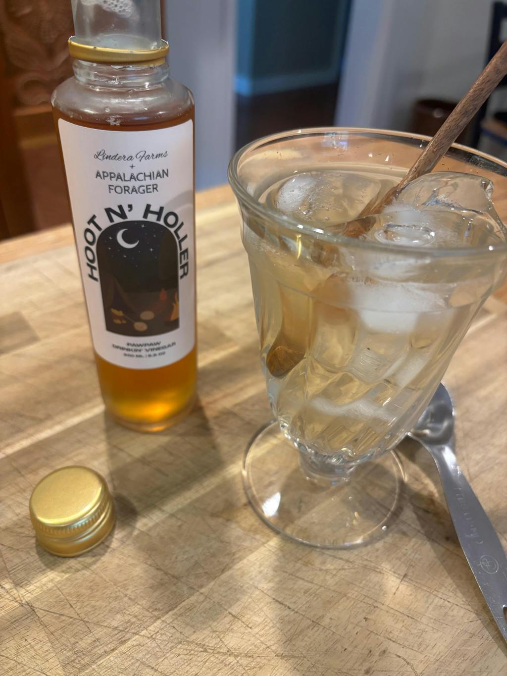We crafted Hoot N’ Holler as a drinking vinegar for mixing. Combine 1 part vinegar with 3 to 4 parts seltzer for a perky probiotic spritzer, or stir it into your favorite moonshine to help the medicine go down.
