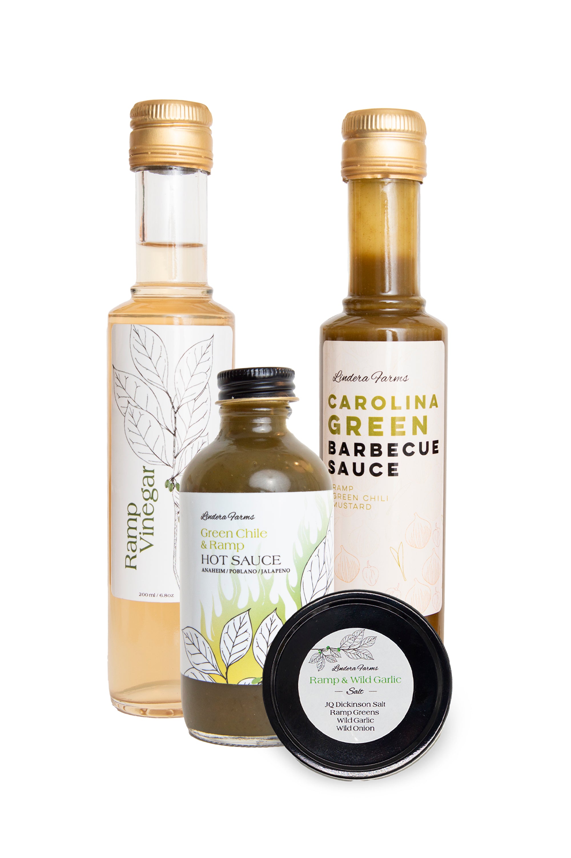All our ramp products in one neat bundle. This pack includes our Ramp Vinegar, Carolina Green BBQ Sauce, Ramp and Green Chile Hot Sauce, and Fermented Ramp Salt. Now you can enjoy the savory taste of Ramps any time of the year instead of waiting for their ever-so-short season. This pack is great for a gift to a foodie friend, or for yourself when you want to restock on your favorites!
